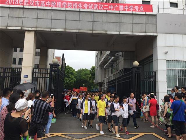 6月20日上午,考生考完語文科目后走出考場。(湖北日報全媒記者 朱惠 攝)