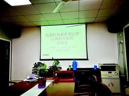 昨日下午,記者來到新洲區(qū)紅十字會醫(yī)院時,醫(yī)院正在組織護理部人員培訓(xùn)醫(yī)德醫(yī)風(fēng)和相關(guān)法律法規(guī)知識。
