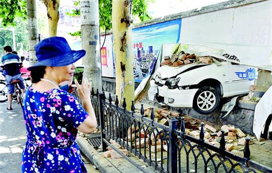 昨日上午11時許,學員李先生坐在江岸區(qū)匯通路一處駕校的辦公板房旁忐忑不安,幾分鐘前他練車時將油門當剎車,把駕校的院墻撞出比門框還大的洞。