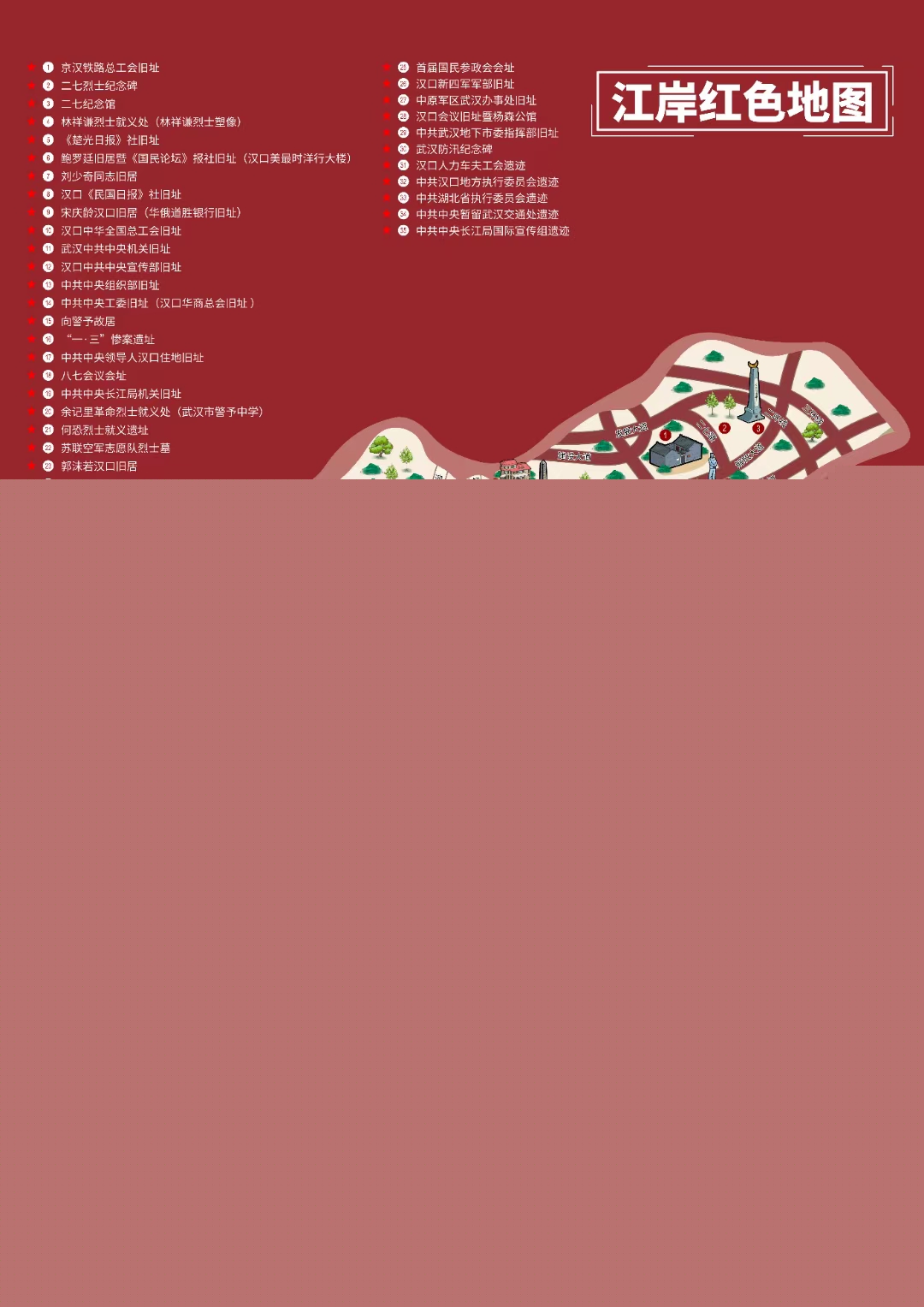 歷史是最好的教科書。該區(qū)將轄區(qū)內(nèi)35處紅色點(diǎn)位進(jìn)行梳理,經(jīng)實(shí)地走訪、查閱史料、專家論證,繪制出《江岸紅色地圖》。這份地圖包含重要革命遺址遺跡、舊址及紀(jì)念設(shè)施,涵蓋了國(guó)家級(jí)、省級(jí)、市級(jí)文物保護(hù)單位。