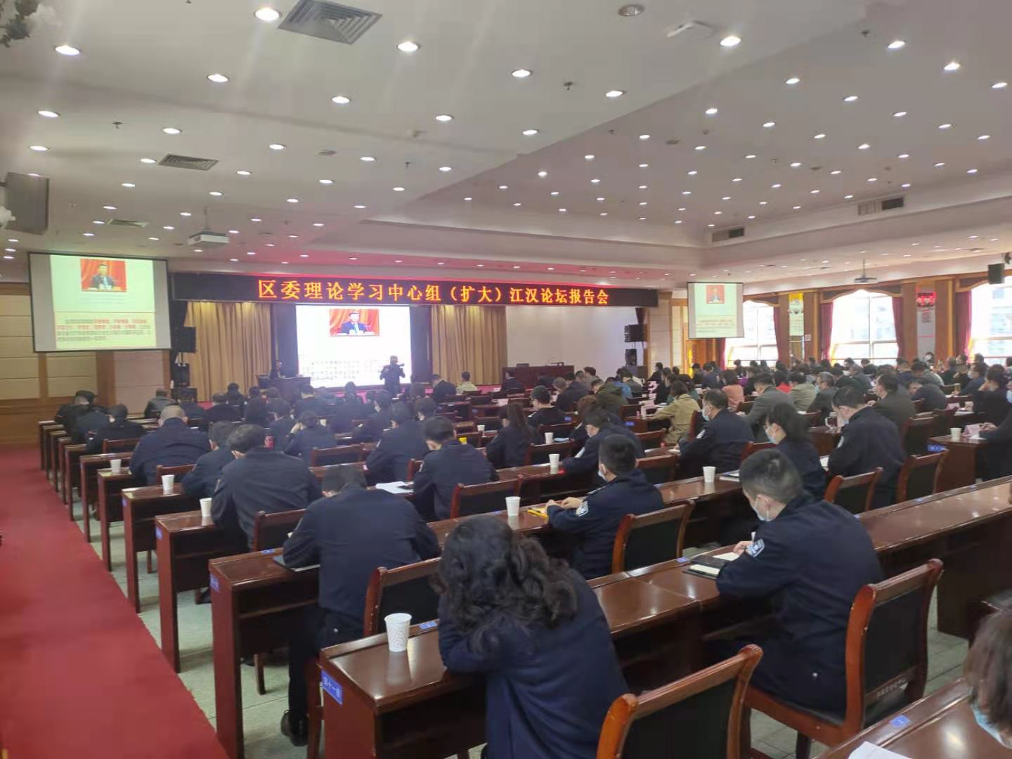 央廣網(wǎng)武漢3月25日消息(記者張迪 通訊員朱素芳 鄧文錦)3月25日下午,武漢市江漢區(qū)委理論學(xué)習(xí)中心組(擴大)舉辦“江漢論壇”報告會。會上,武漢市委黨校教授翟一博作黨史學(xué)習(xí)教育輔導(dǎo)報告,江漢區(qū)委、區(qū)人大常委會、區(qū)政府、區(qū)政協(xié)領(lǐng)導(dǎo)班子成員及各街道各部門各單位黨政主要負責(zé)人參加學(xué)習(xí)。
