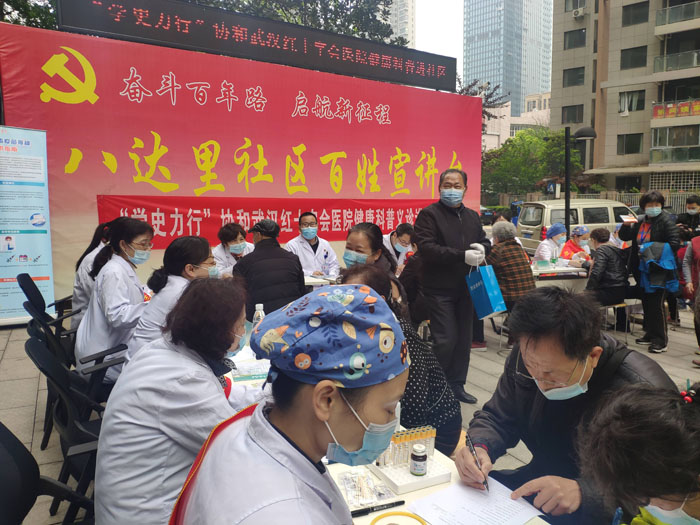 央廣網(wǎng)武漢4月8日消息(李磊 朱素芳 姚祖東)4月8日上午,協(xié)和武漢紅十字會醫(yī)院組織黨員醫(yī)生志愿服務隊走進江漢區(qū)常青街八達里社區(qū),開展“學史力行”首場健康科普義診進社區(qū)活動。協(xié)和武漢紅十字會醫(yī)院13名專家現(xiàn)場為社區(qū)居民一對一進行醫(yī)療康復指導,給社區(qū)居民帶來了實實在在的關懷和幫助。