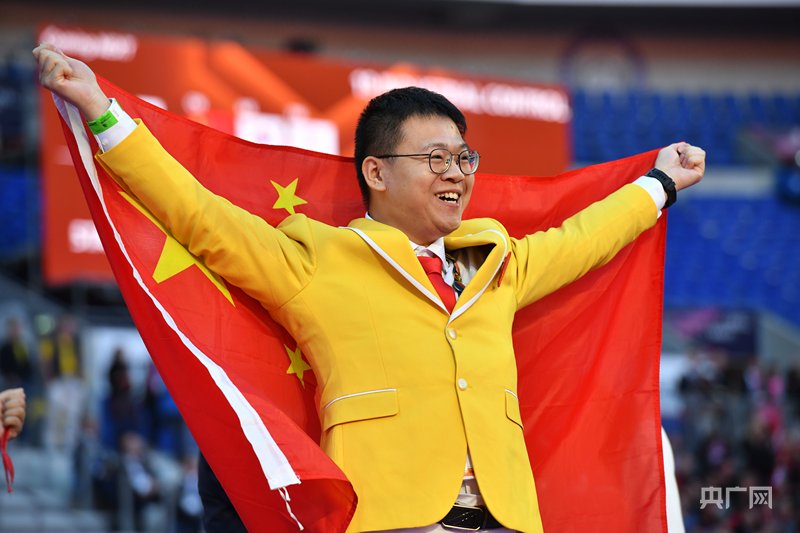 曹博在第47屆世界技能大賽上勇奪電子技術(shù)項目金牌(央廣網(wǎng)發(fā) 湖北省人社廳供圖)