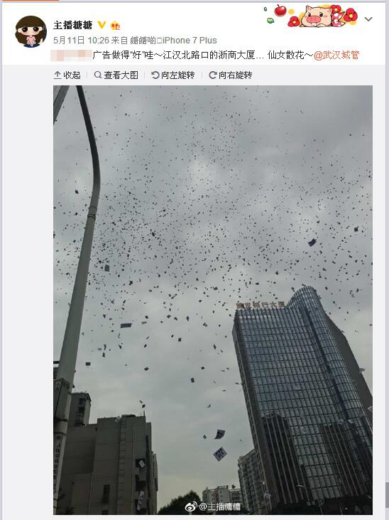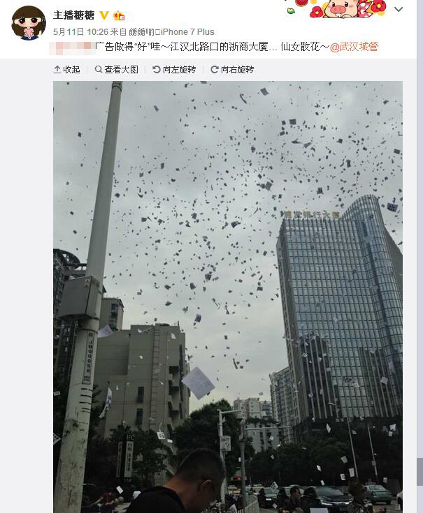 楚天金報訊(記者林晶)為了生意好做,男子竟在49樓樓頂,一把撒下5000張小廣告。昨日上午10時,這奇葩一幕發(fā)生在江漢北路,引來路人圍觀。該男子也因此遭到處罰!皬V告做得‘好’啊”,昨日,網(wǎng)友“主播糖糖”發(fā)微博稱,江漢北路有人撒小廣告,猶如仙女散花,“廣告效益不知道,負面宣傳效果已經(jīng)達到了”。照片顯示,無數(shù)的小廣告從天而降,鋪滿了江漢北路和新華路。該網(wǎng)友當即@武漢城管。