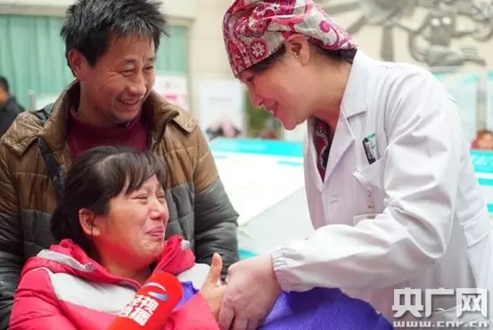 40歲的高位截癱“紅安繡女”席和玉,在武漢市婦幼保健院平安生產(chǎn),出院回家前,席和玉拉著醫(yī)生宋曉婕的手萬般感謝,流下了激動的淚水。