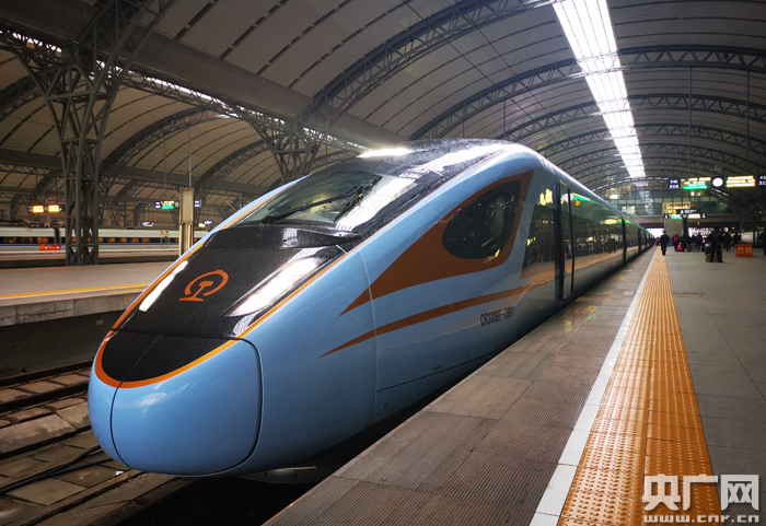 圖為:“藍(lán)暖男”復(fù)興號(hào)?吭跐h口站 央廣網(wǎng)發(fā) 通訊員供圖