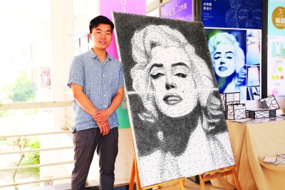 本報訊(記者楊佳峰 通訊員曾晗)昨天,武漢科技大學(xué)城市學(xué)院藝術(shù)學(xué)部優(yōu)秀畢業(yè)設(shè)計展在該校展出。一幅由9000多顆釘子和線團(tuán)制作的163cm×120cm 巨型瑪麗蓮·夢露肖像吸引了不少學(xué)生駐足拍照。
