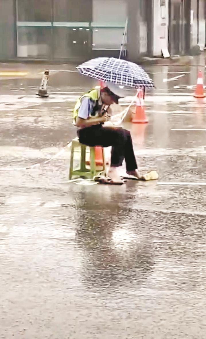 楚天都市報(bào)訊(記者陳俊 通訊員文方舉)大雨中,交通輔警坐在路中央吃盒飯,光腳踩在膠靴上。一手拿筷子,一手撐雨傘,還不時(shí)抬頭揮手勸返車輛。這幾天,人民日?qǐng)?bào)轉(zhuǎn)發(fā)的一則視頻在網(wǎng)上很火,網(wǎng)友們紛紛留言表示被感動(dòng)。記者昨日了解到,吃盒飯的是恩施市公安局交警大隊(duì)輔警康弘,同事們根據(jù)他的名字諧音打趣叫他“抗洪哥”。