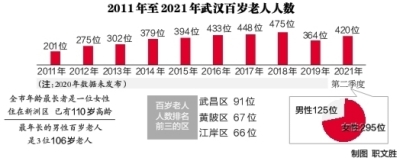 目前,全市15個(gè)區(qū)(含功能區(qū))都有百歲老人。武昌區(qū)百歲老人最多,共有91位;其次是黃陂區(qū)67位;再次是江岸區(qū)66位。