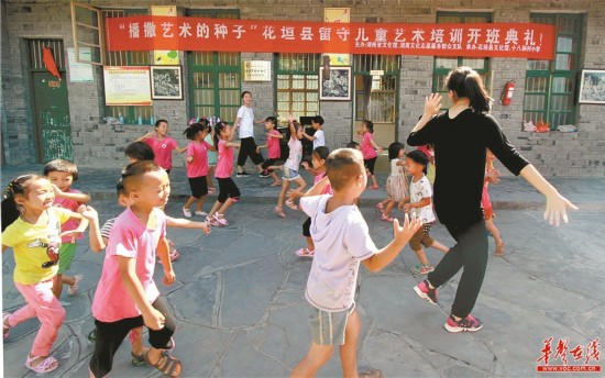 7月18日,花垣縣雙龍鎮(zhèn)十八洞村,志愿者在教孩子們學(xué)習(xí)舞蹈。近日,湖南省啟動(dòng)貧困山區(qū)留守兒童藝術(shù)幫扶文化志愿行動(dòng),開辦“播撒藝術(shù)的種子”留守兒童藝術(shù)培訓(xùn)班,重點(diǎn)以花垣、新化等6個(gè)國(guó)家級(jí)貧困縣作為幫扶對(duì)象。龍恩澤 攝