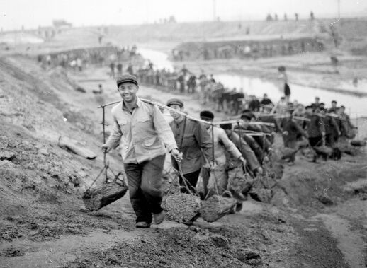 1978年1月8日,桃源縣防洪大堤一派熱火朝天的建設(shè)景象。 湖南日報(bào)記者 攝