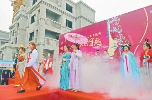 3月6日,在長沙縣廣悅星苑項(xiàng)目部,來自中建三局中南分公司施工一線的30名女勞務(wù)工,上演了一場別開生面的“穿越”秀。她們脫下工裝,換上中國傳統(tǒng)服飾,演繹東方古典美,以這種新穎獨(dú)特的形式,迎接自己的節(jié)日——“三八”國際婦女節(jié)。