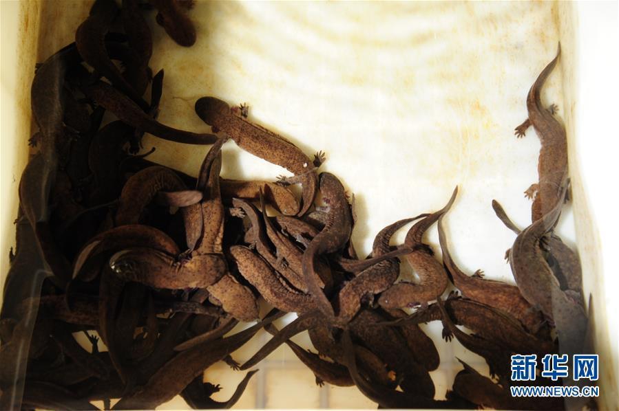 3月16日在湖南省大鯢救護(hù)中心拍攝的在野外獲救的一尾娃娃魚。 新華社記者 明星 攝 圖片來源:新華網(wǎng)