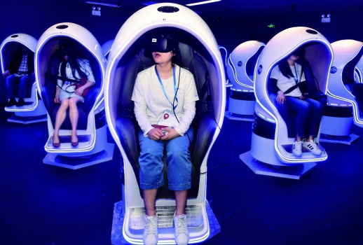 5月18日晚,市民在體驗(yàn)VR沉浸式“帛畫(huà)奇境”。當(dāng)天是國(guó)際博物館日,湖南省博物館舉行“博物館之夜”活動(dòng),通過(guò)現(xiàn)代技術(shù)創(chuàng)新與歷史文物的融合,讓市民和游客體驗(yàn)一場(chǎng)奇妙的文化之旅。湖南日?qǐng)?bào)記者 郭立亮 攝