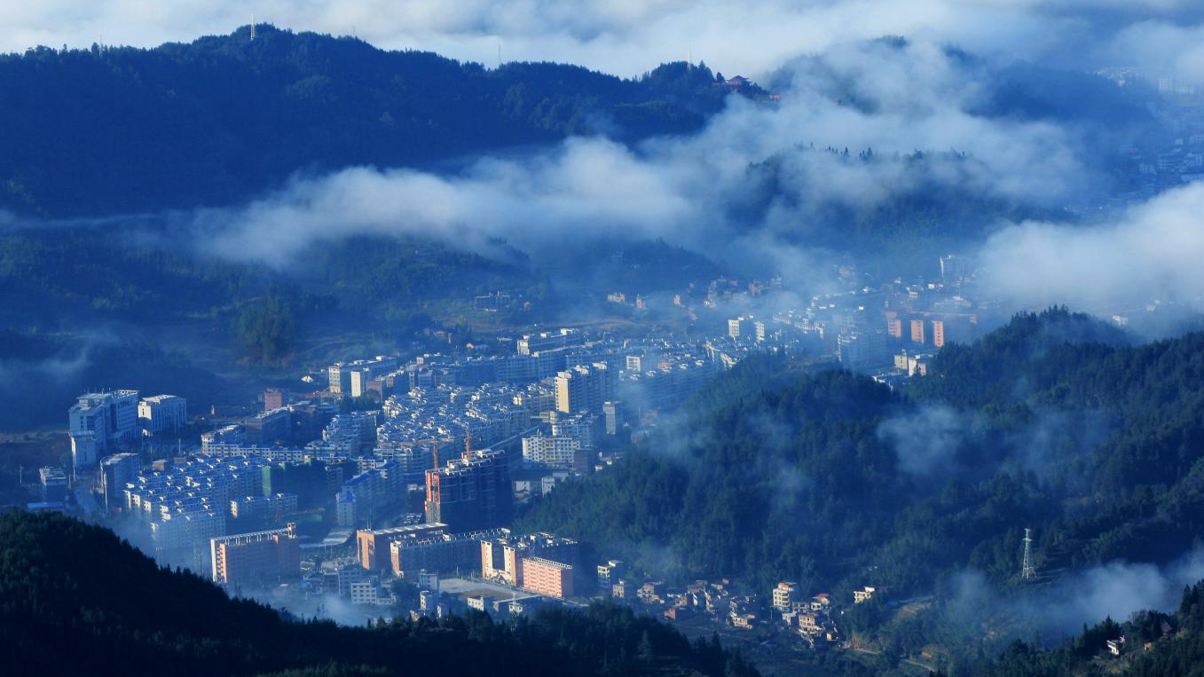 云霧環(huán)繞下的山城桂東(桂東縣委宣傳部 供圖)