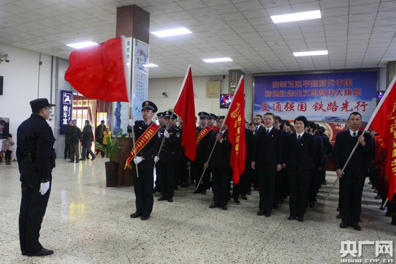 衡陽站派出所教導(dǎo)員胡宇輝組織青年值勤隊(duì)和黨員先鋒隊(duì)民警莊嚴(yán)宣誓“忠誠盡責(zé)、捍衛(wèi)春運(yùn);決戰(zhàn)用我,用我必勝,誓保平安”,設(shè)立青年執(zhí)勤隊(duì)執(zhí)勤專崗,制作春運(yùn)宣傳欄,組織青年民警和黨員民警的先鋒作用,為旅客普及安檢查危知識、向旅客贈送“!弊值。