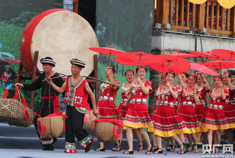 開(kāi)幕式上,《太陽(yáng)神舞》《多噶多耶》以及苗家敬酒歌等極具綏寧地方特色的節(jié)目及儀式彰顯濃厚的民族風(fēng)情(央廣網(wǎng)發(fā) 陳敏捷 攝)