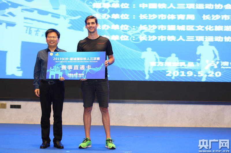 新聞發(fā)布會現(xiàn)場邀請了來自澳大利亞的鐵三世界冠軍米歇爾·保羅·羅賓斯(央廣網(wǎng)發(fā) 組委會供圖)