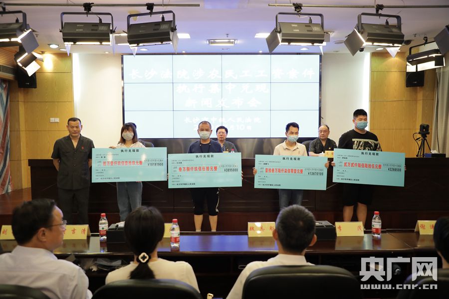 央廣網(wǎng)長(zhǎng)沙7月11日消息(記者姜文婧 通訊員李昭菲)7月10日長(zhǎng)沙市中級(jí)人民法院召開長(zhǎng)沙法院涉農(nóng)民工工資案件執(zhí)行集中兌現(xiàn)新聞發(fā)布會(huì)。10位省、市人大代表、政協(xié)委員應(yīng)邀到現(xiàn)場(chǎng)監(jiān)督執(zhí)行。