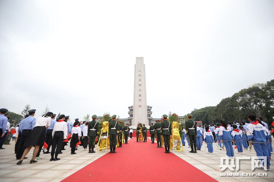 市民向烈士敬獻鮮花,寄托哀思。(央廣網(wǎng)發(fā) 通訊員羅剛攝)