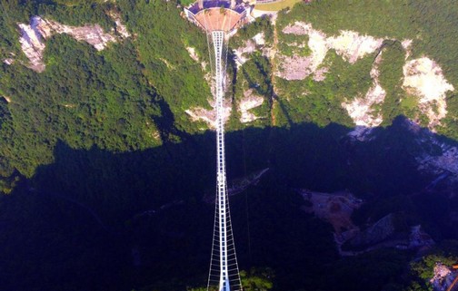 選址在張家界大峽谷風(fēng)景區(qū)栗樹埡和吳王坡區(qū)域內(nèi)的這座玻璃橋長430米、寬6米,橋面鋪設(shè)了99塊三層疊加而成的鋼化玻璃,厚度僅0.6米,創(chuàng)造了世界最長、世界最高、世界首座玻璃作為主受力結(jié)構(gòu)的大型橋梁等多項(xiàng)“世界之最”。
