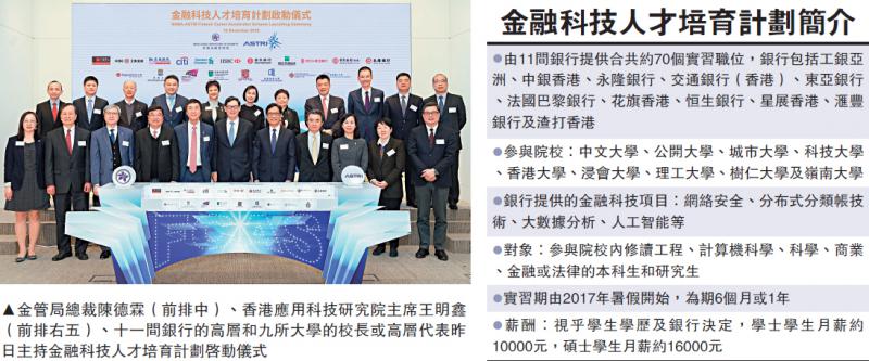香港推金融科技人才培育計(jì)劃 獲11間銀行及9所大學(xué)支持