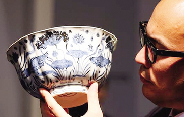 香港蘇富比中國(guó)藝術(shù)品春拍4月5日在香港會(huì)展中心舉行。備受矚目的明宣德青花魚藻紋十棱菱口大碗以2.29億港元成交,成為明代瓷器第二高拍賣成交價(jià)。