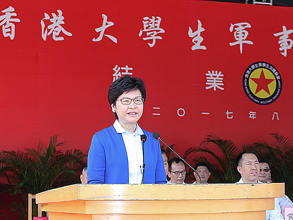 香港特別行政區(qū)行政長官林鄭月娥在典禮上表示,體驗營為香港大學(xué)生提供一個寶貴的學(xué)習(xí)機會,透過嚴(yán)格的軍事訓(xùn)練,同學(xué)們除了學(xué)會軍隊的基本知識和技能,體驗軍人嚴(yán)格和規(guī)律的生活外,也能磨練出堅強的意志,培養(yǎng)了自律、服從、團結(jié)和刻苦耐勞的精神,日后為建設(shè)香港、報效國家作出貢獻(xiàn)。