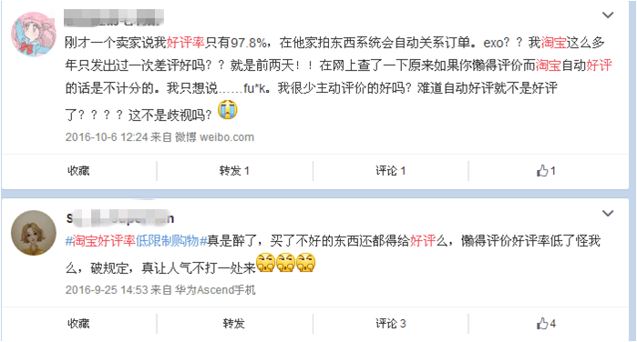 如果這些遭遇還算個(gè)例,那么最近有些淘寶賣家發(fā)出的大招,則深深地影響到了一大批消費(fèi)者。買家在淘寶上給出的好評(píng)率低于一定數(shù)值,就有可能被淘寶賣家拒絕下單。以后,你還敢給差評(píng)嗎?