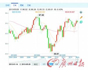 近期國際油價(jià)走勢震蕩,一方面近期美國經(jīng)濟(jì)數(shù)據(jù)與美國股市持續(xù)上漲給國際油價(jià)帶來支撐,上周五美國公布5月消費(fèi)者信心指數(shù)遠(yuǎn)超市場預(yù)期;另一方面,美元不斷走強(qiáng)也給整個(gè)大宗商品市場帶來壓力。NYMEX原油期貨自進(jìn)入5月份以來在95美元/桶上下持續(xù)震蕩;布倫特原油期貨則在100~105美元之間反復(fù)震蕩。