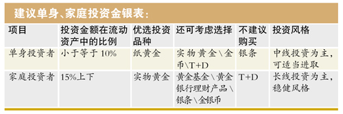 對(duì)于家庭投資者來說,生活較穩(wěn)定、資金較充裕,比較適宜采用長線投資、穩(wěn)健買入的風(fēng)格來投資金銀。