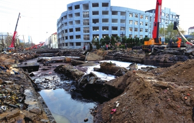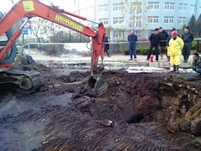 當(dāng)時,漏油點路面已經(jīng)挖開了一個近3米長、2米寬、2米深的作業(yè)坑,路面上的油污已基本清理干凈。