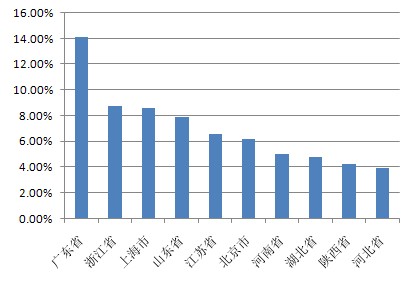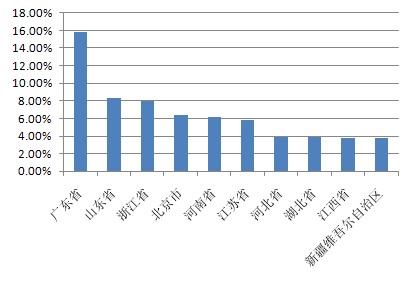 本期十大熱門(mén)股票搜索地域分布