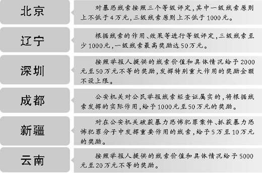 部分地區(qū)涉恐涉暴線索獎(jiǎng)勵(lì)辦法。
