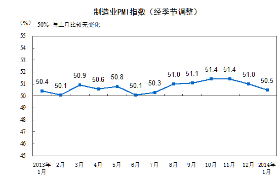 2014年1月中國制造業(yè)采購經(jīng)理指數(shù)為50.5%
