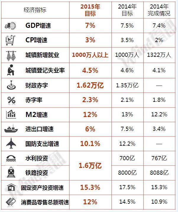 政府工作報告:2015年目標(biāo)匯總一覽