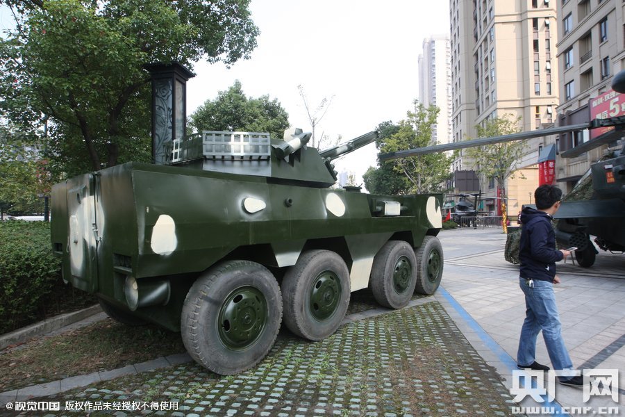 2015年11月02日,浙江杭州,杭州一家房產(chǎn)商為了沖量,用上了“飛機大炮坦克”。該開發(fā)商在樓盤外放置了三架仿真模型飛機,一架艦載機,兩架直升級,另有兩門“大炮”、兩輛“裝甲車”、一輛“坦克”。這些大家伙因為外形逼真,吸引了市民的眼球。9月至10月一向是一年成交旺季,自進入金九銀十以來,杭州各城區(qū)成交量有一定程度的上升,但因為庫存較大,銷售前景并不樂觀。