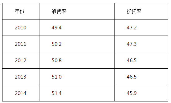 表2:我國經(jīng)濟消費率和投資率變動(單位:%)