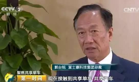 富士康科技集團(tuán)總裁 郭臺(tái)銘: 就是現(xiàn)在接觸到共享單車(chē)、共享汽車(chē),進(jìn)入到這些很多的網(wǎng)絡(luò)的,等于說(shuō)硬件和軟件要結(jié)合的時(shí)代,所以說(shuō)富士康做到這個(gè)就蠻重要的。我們?cè)谥圃斓念I(lǐng)域,在設(shè)計(jì)開(kāi)發(fā)的領(lǐng)域,可以把這家公司很快地讓它有一個(gè)市場(chǎng)占有率。