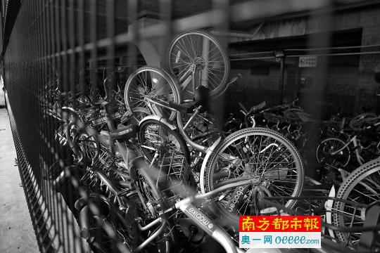 前日,深圳南山區(qū)歐環(huán)路橋底的南山區(qū)公共自行車倉(cāng)庫(kù)調(diào)度中心,大量共享單車被鎖住。南都記者 趙炎雄 攝