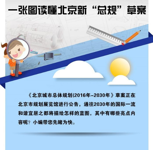 今日,市規(guī)劃國(guó)土委發(fā)布通知,《北京城市總體規(guī)劃(2016年-2030年)》草案已經(jīng)編制完成,依據(jù)相關(guān)法規(guī),為充分征詢和吸納公眾意見,從即日開始,在北京市規(guī)劃展覽館一層展廳對(duì)草案進(jìn)行公告。