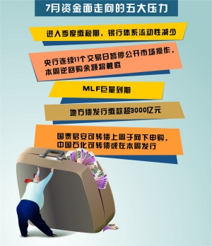 但7月份流動性面臨的壓力不容忽視,繳稅壓力、大規(guī)模中期借貸便利(MLF)到期、國泰君安證券轉(zhuǎn)債資金凍結(jié)都是其中的不確定性。