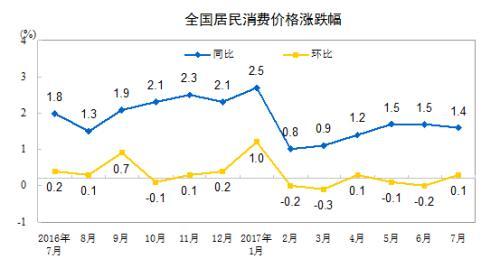 數(shù)據(jù)顯示,7月份CPI上漲1.4%,漲幅比上月回落0.1個(gè)百分點(diǎn)。記者注意到,CPI漲幅自2月份開始已經(jīng)連續(xù)6個(gè)月低于2%。