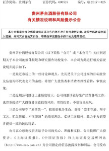針對茅臺股價的大漲,茅臺集團也在提請廣大投資者注意投資風險。