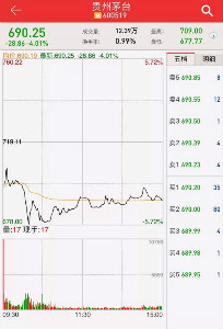 受此影響,周五(11月17日)早盤,貴州茅臺在連續(xù)大漲之后遭遇"急剎車",開盤即大跌超過3%,盤中跌幅一度接近6%。截至中午收盤,貴州茅臺下跌3.91%,報691元/股,成交63.92億元。整個上午,茅臺市值蒸發(fā)354億元。截至下午收盤,貴州茅臺報690.25元/股,全天市值蒸發(fā)362億元。