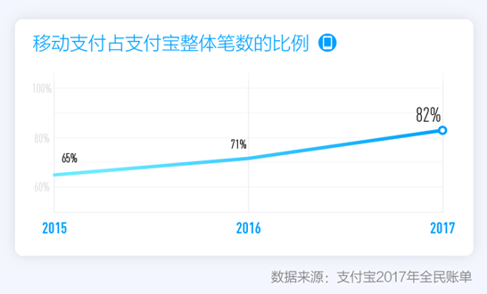 支付寶全民賬單顯示,2017年全國(guó)5.2億支付寶用戶的移動(dòng)支付占比為82%;貴州、山西以92%并列第一,均創(chuàng)新高。移動(dòng)支付占比超過(guò)90%的省份超過(guò)11個(gè),而前一年僅有一個(gè)。隨著移動(dòng)支付的場(chǎng)景幾乎涵蓋各個(gè)方面,越來(lái)越多的人能不帶錢包出門(mén)。