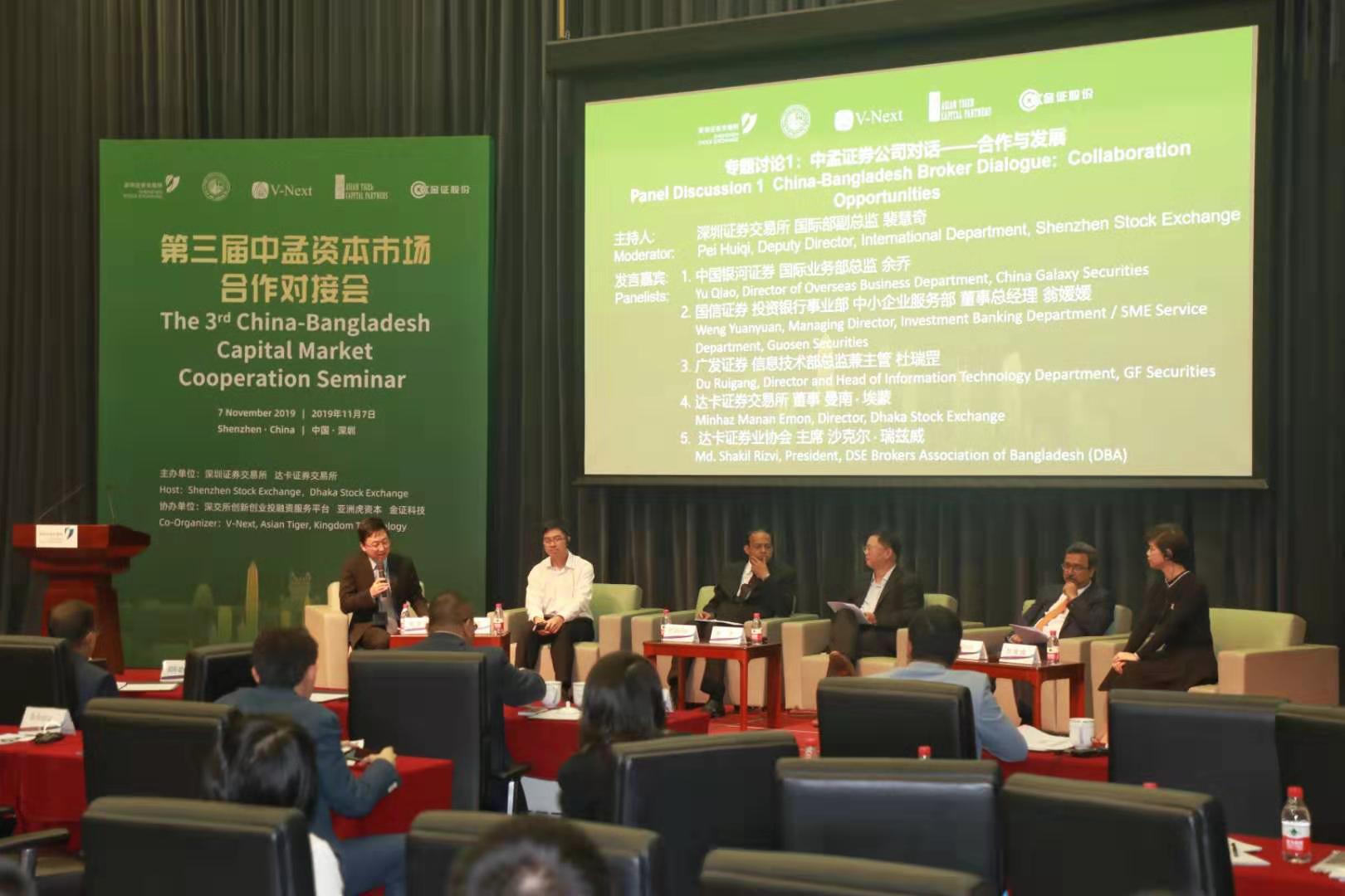 深圳證券交易所打造的創(chuàng)新創(chuàng)業(yè)投融資服務(wù)平臺V-Next是合作進行的重要通道,在昨天的大會上,15家孟加拉企業(yè)通過該平臺進行了跨境路演,而這只是深圳證券交易所進行國際化發(fā)展的一個縮影。截至目前,深圳證券交易所已與46家境外交易所和金融機構(gòu)簽署合作諒解備忘錄。劉輔忠表示,資本市場的國際化合作為企業(yè)“走出去”和資本“引進來”提供了有力支持,深圳證券交易所“利用V-Next平臺就這樣一個載體。我們搭起橋梁,讓國內(nèi)的投資方和國內(nèi)有經(jīng)驗、有能力走出去的企業(yè),尋找在地化的伙伴和在地化的項目。同時對于境外的一些投資者愿意參與國內(nèi)的二級市場的交易,或者是一級市場的投資,或者是跨境的并購,我們都可以提供一些全方位的信息服務(wù)!