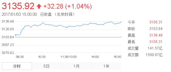 收盤:三大股指喜迎開門紅 滬指漲1.04%強勢反彈