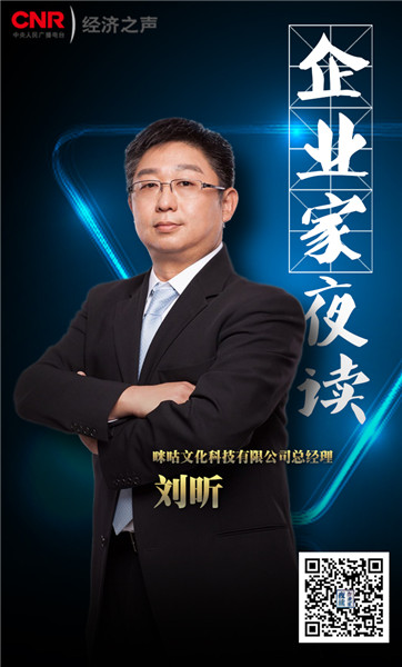 導讀:2018年,中央人民廣播電臺經(jīng)濟之聲全新推出《企業(yè)家夜讀》,這是一檔面對企業(yè)家群體及關心關注這個群體朋友們的閱讀朗讀節(jié)目。每周日晚九點,我們都會相聚在電波里。今天做客《企業(yè)家夜讀》的,是咪咕文化科技有限公司總經(jīng)理劉昕。