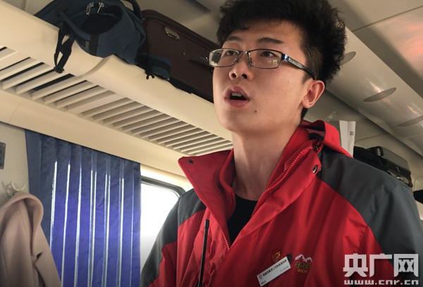 雖然只是臨時擔(dān)任列車員,但是王銘的工作與正式的列車員并沒有什么不同。“就我們列車員而言,平時主要做的日常工作就是車廂的衛(wèi)生清潔工作,還有就是對于旅客的突發(fā)情況,我們也要做出積極的回應(yīng)。”